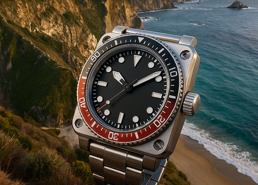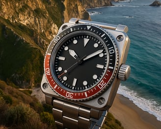 Project Big Sur captures the untamed beauty of California’s iconic coastal cliffs in a bold 42mm square case. This is a tribute to the raw power and timeless rhythm of the Pacific — a piece designed for those who find freedom in the edge between land and sea.